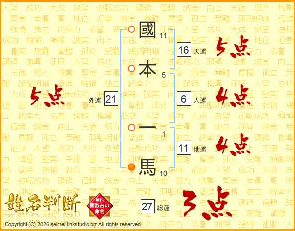 國本一馬さんの地運は11画の4点!