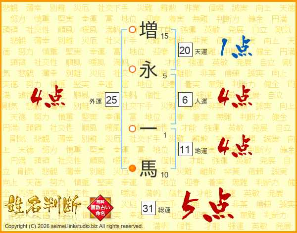 増永一馬さんの地運は11画の4点!
