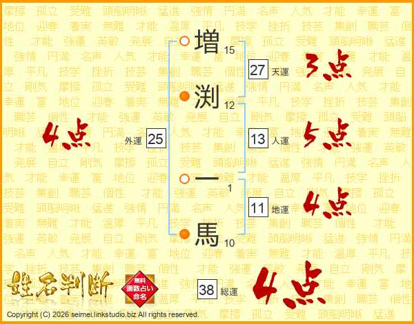 増渕一馬さんの総運は38画の4点!