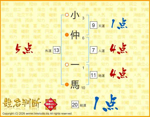小仲一馬さんの総運は20画の1点!