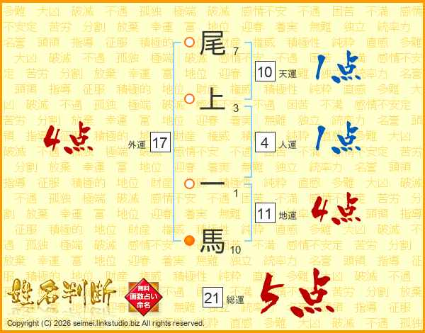 尾上一馬さんの総運は21画の5点!