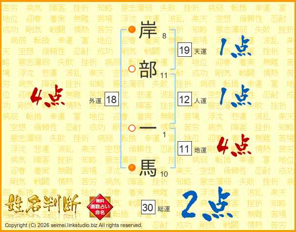岸部一馬さんの総運は30画の2点!