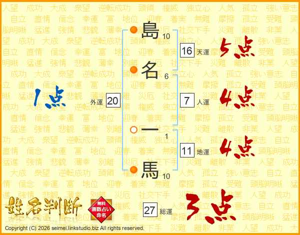 島名一馬さんの総運は27画の3点!