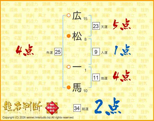 広松一馬さんの総運は34画の2点!