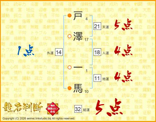 戸澤一馬さんの総運は32画の5点!