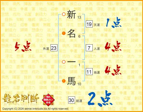 新名一馬さんの総運は30画の2点!