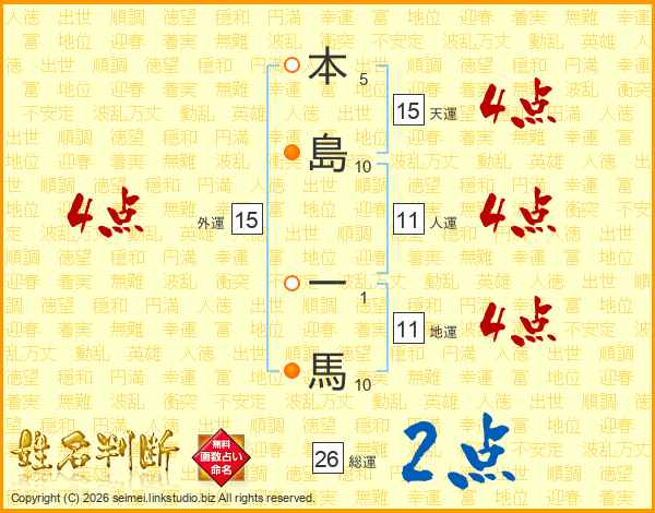 本島一馬さんの人運は11画の4点!