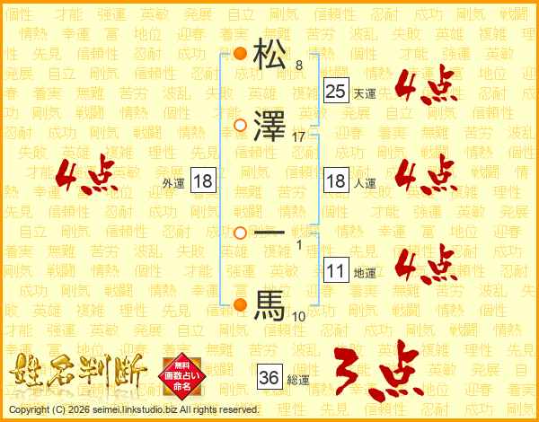 松(8画)澤(17画) 一(1画)馬(10画)