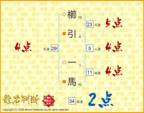 櫛引一馬さんの天運は23画の5点!