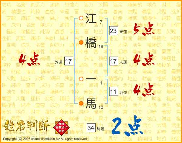 江橋一馬さんの天運は23画の5点!