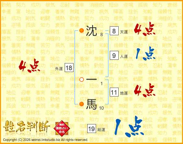 沈一馬さんの総運は19画の1点!
