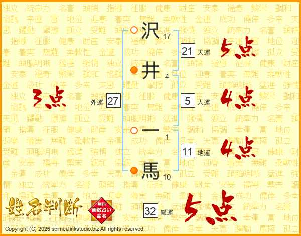 沢井一馬さんの総運は32画の5点!