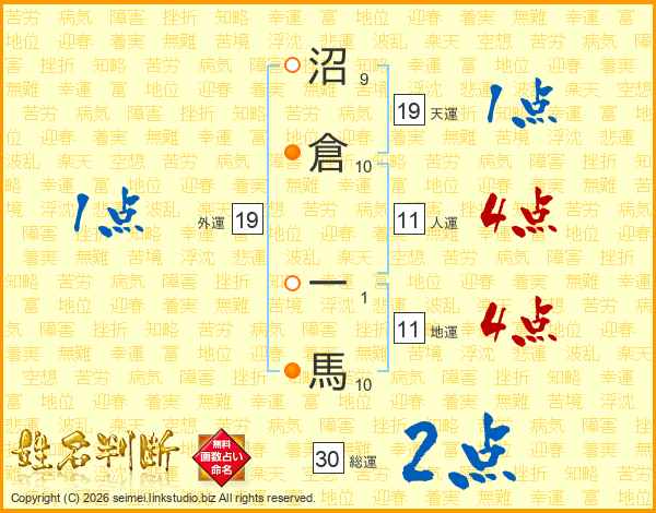 沼倉一馬さんの総運は30画の2点!