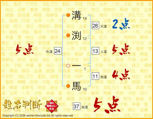 溝渕一馬さんの総運は37画の5点!