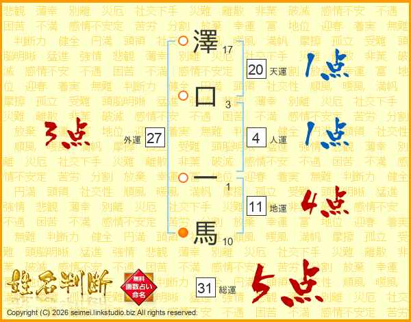 澤口一馬さんの総運は31画の5点!
