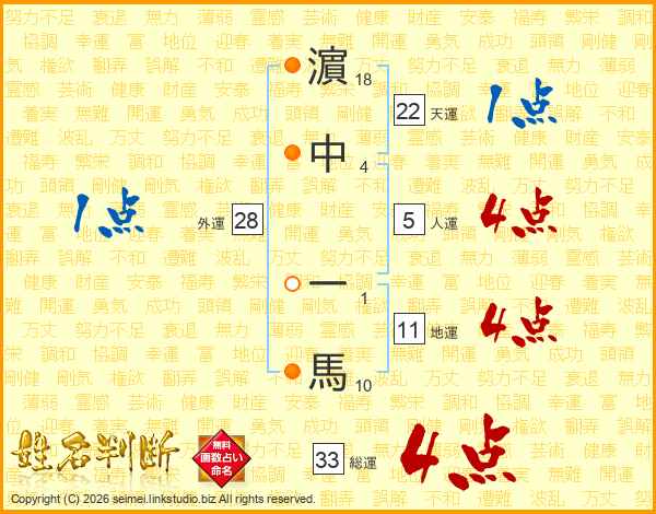 濵中一馬さんの総運は33画の4点!