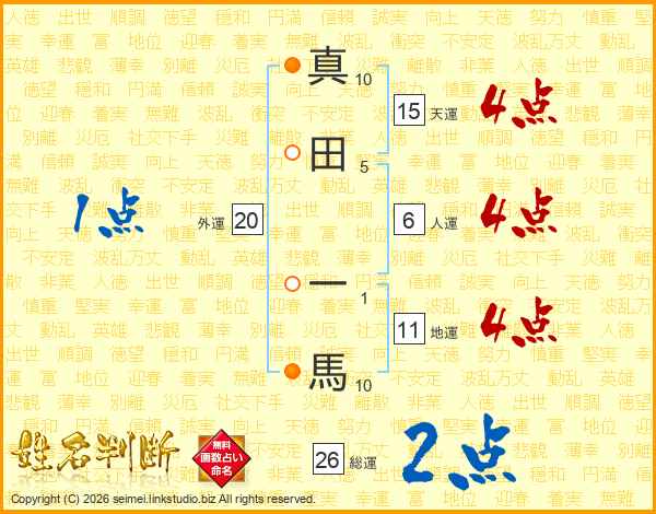 真田一馬さんの総運は26画の2点!