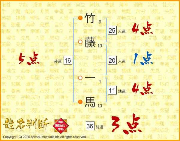 竹藤一馬さんの天運は25画の4点!