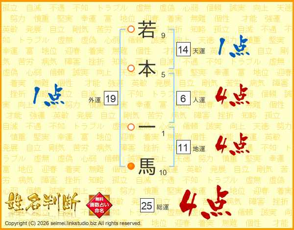 若本一馬さんの総運は25画の4点!