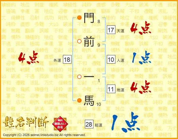 門前一馬さんの総運は28画の1点!