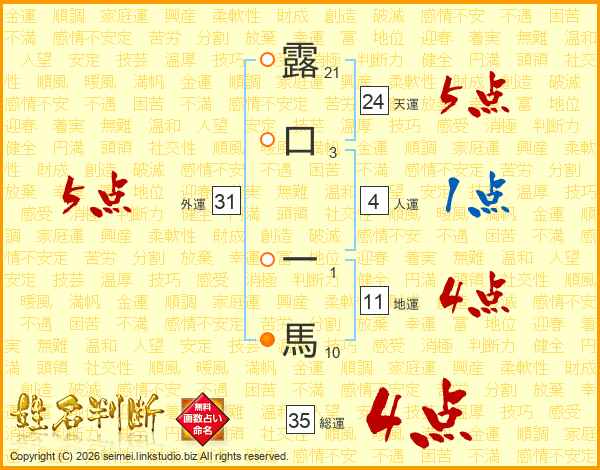 露口一馬さんの総運は35画の4点!