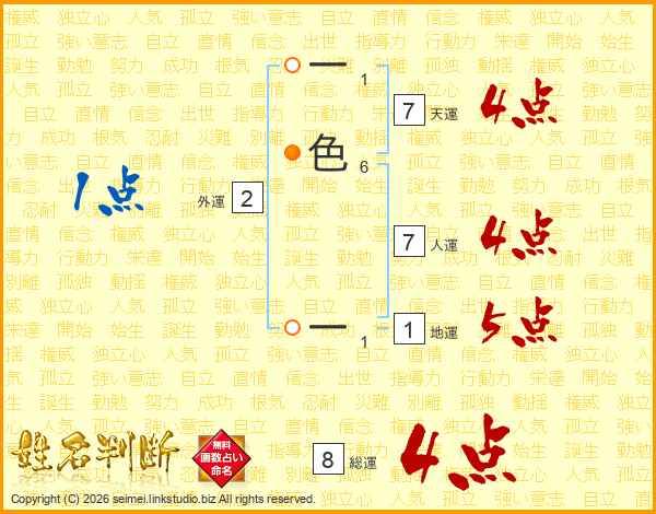 一色一さんの総運は8画の4点!