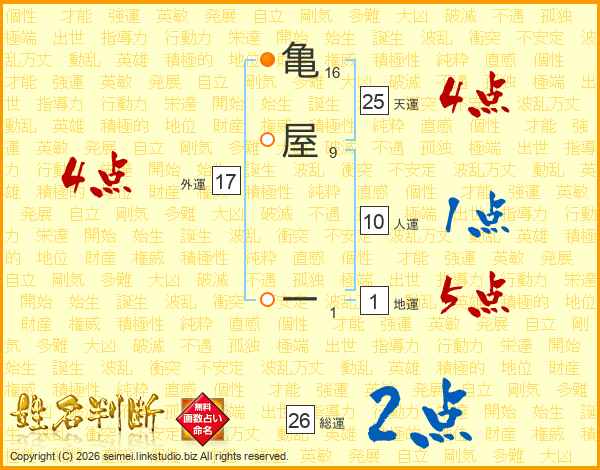 亀屋一さんの総運は26画の2点!