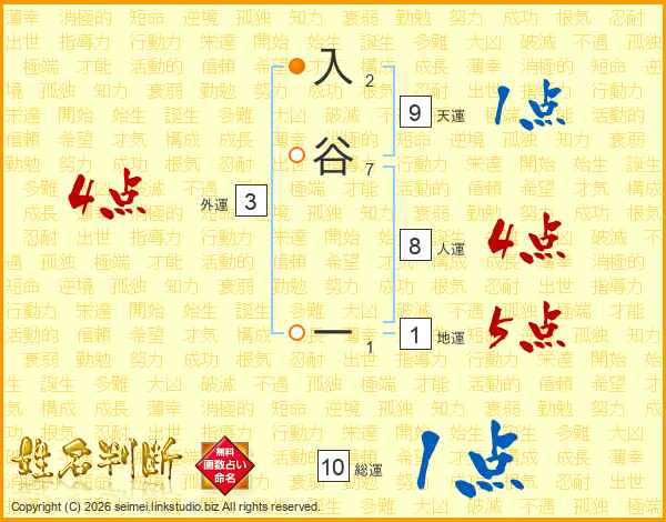 入谷一さんの総運は10画の1点!