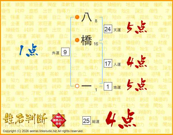 八橋一さんの総運は25画の4点!