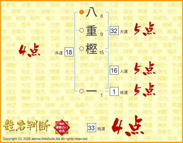八重樫一さんの総運は33画の4点!