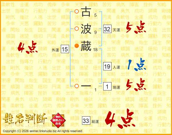 古波蔵一さんの総運は33画の4点!