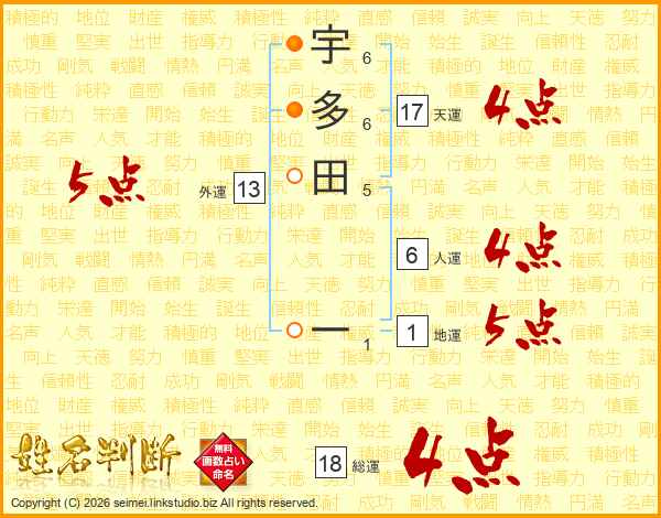宇多田一さんの総運は18画の4点!