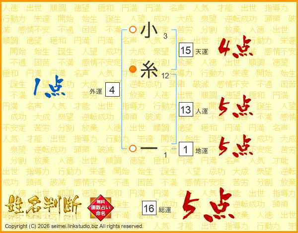 小糸一さんの総運は16画の5点!