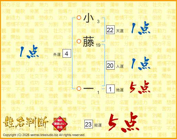 小藤一さんの総運は23画の5点!