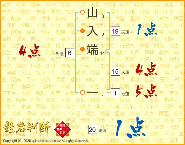 山入端一さんの人運は15画の4点!