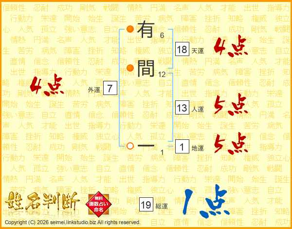 有間一さんの総運は19画の1点!