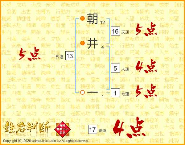 朝井一さんの地運は1画の5点!