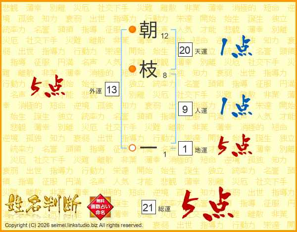 朝枝一さんの総運は21画の5点!