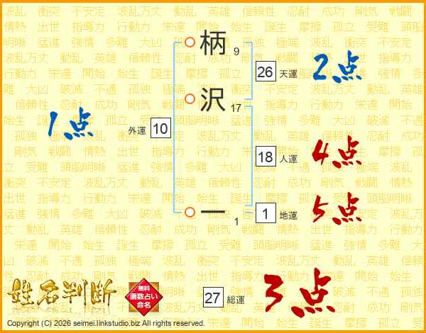 柄沢一さんの天運は26画の2点!