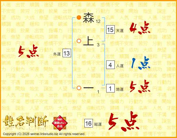 森上一さんの総運は16画の5点!