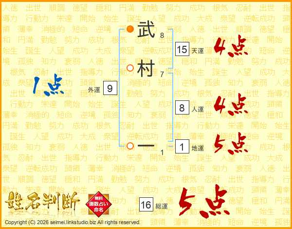 武村一さんの総運は16画の5点!