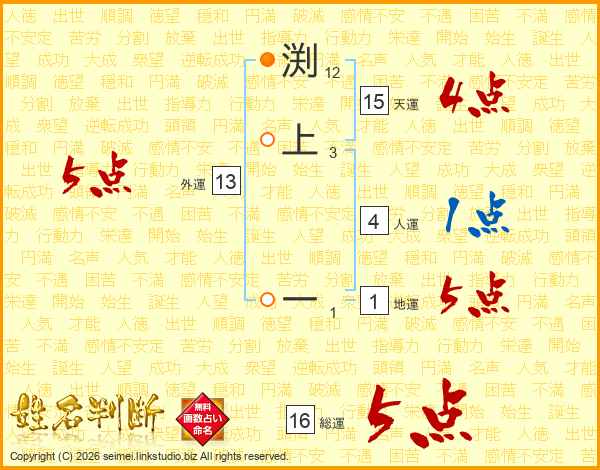 渕上一さんの総運は16画の5点!