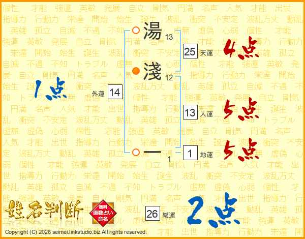 湯淺一さんの人運は13画の5点!
