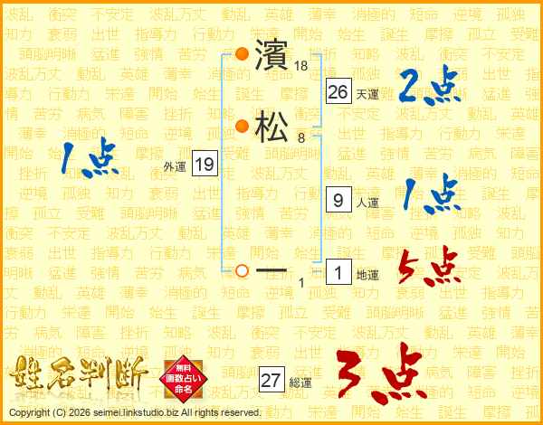 濱松一さんの天運は26画の2点!