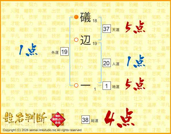 礒辺一さんの総運は38画の4点!