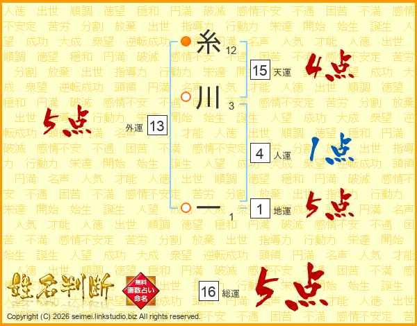糸川一さんの総運は16画の5点!