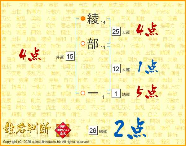 綾部一さんの総運は26画の2点!