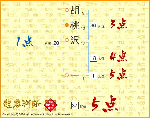胡桃沢一さんの総運は37画の5点!
