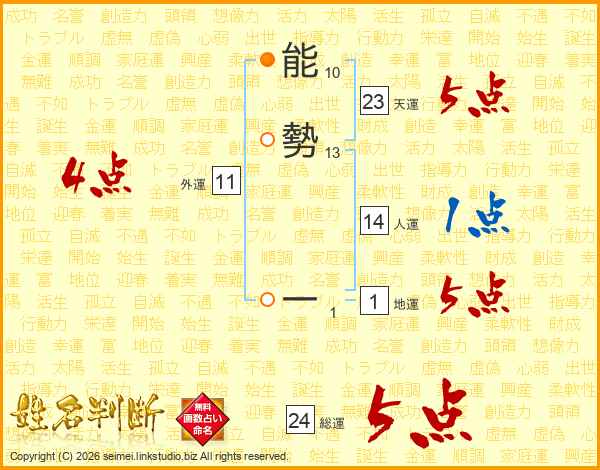 能勢一さんの総運は24画の5点!