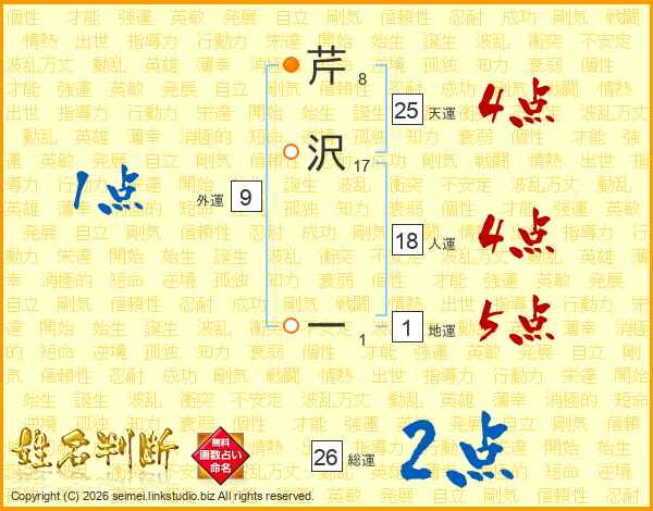 芹沢一さんの総運は26画の2点!